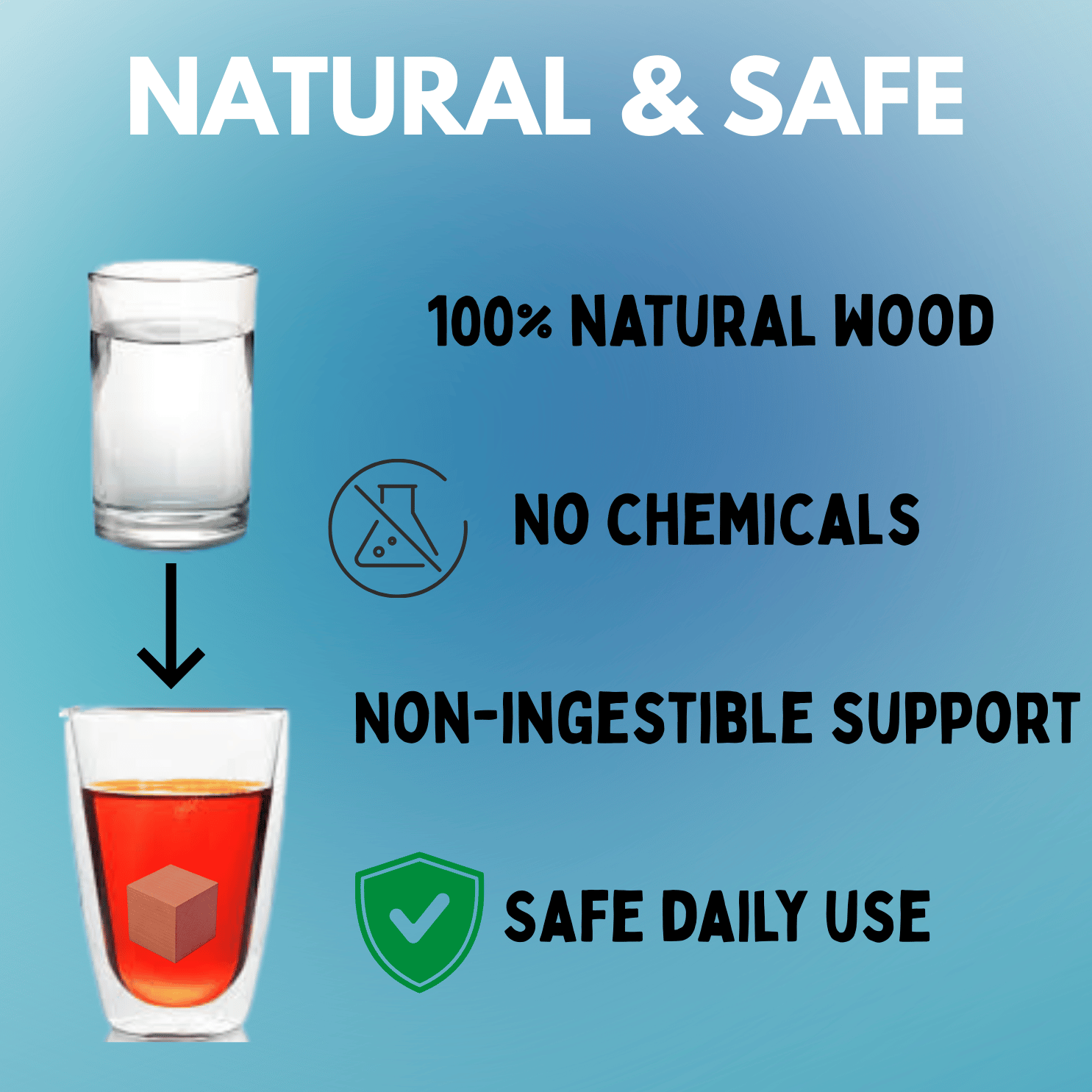 Drop 2 cubes in 250ml water (copper bottle ideal) at night. Leave 8–10 hours. Water turns light brown – proof it's working!